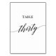 Cet élégant numéro de table de calligraphie noire trente est parfait pour un mariage simple. Le design neutre présente une carte minimaliste décorée de typographie romantique et fantaisiste. La carte s'imprime à l'avant et à l'arrière (recto verso). Les autres numéros de tableau de la collection sont vendus séparément.