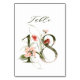 Cette carte de numéro de table comporte un numéro vert décoré avec des illustrations d'aquarelle de fleurs et de feuilles en rose roux, pêche, rouge et vert. Ce numéro de table est parfait pour les mariages, diplômes, baby showers, douches nuptiales, anniversaires et autres événements. Tableau 18. Veuillez vérifier tous les numéros disponibles.