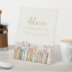 Notre panneau "Conseils pour l'épouse à devenir" est un bel ajout à votre douche nuptiale. Il invitation les invités à partager leur sagesse et leurs voeux. L'enseigne est ornée de notre signature et de notre motif fleur sauvage, ce qui en fait une pièce remarquable.