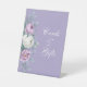 Ce panneau de piédestal mariage lavande-violet présente des pivoines d'aquarelles blanches et violettes, de la lavande, des formes géométriques et de la typographie. Idéal pour un mariage extérieur. Trouvez les articles correspondants dans Lavender Purple Floral Mariage Collection.