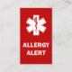Nos cartes d'alerte d'allergie alimentaire personnalisables sont une excellente option pour les personnes à la recherche de cartes d'alerte d'allergie alimentaire à usage unique ou en vrac qui peuvent être distribuées aux employés des services alimentaires, aux gardiens d'enfants, et plus encore! Notre conception présente des accents rouges vifs et le symbole "étoile de vie" des services médicaux d'urgence pour le rendre facilement identifiable comme une carte d'information d'alerte médicale. Customisez-le en ajoutant votre allergie et vos allergies ainsi que le nom et les informations de votre contact d'urgence.