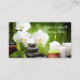 Cette carte de visite est présentée dans un papier blanc semi-brillant classique de base avec une impression photo de massage spa. Customisez cette carte, changez le texte à votre place. Image stock freepik.com