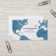 Jolie carte de contact pour vous promouvoir avec élégance... face avant : carte bleue surdimensionnée du monde avec effet désespéré, et un petit avion, nom et profession (guide touristique, agence de voyage...), et slogan personnalisé ('ici on y va à nouveau'); dos : lignes de texte (nom d'entreprise, téléphone, email et adresse) avec logo de la Société.