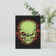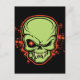 Grüner Monsterskull mit gelben Reißzähnen und roten Querhaaren im bösen Auge. Mit einer roten Kontur und einem ausgeprägten Plätschern. T - Shirt, Hunde, Karten, Geschenke.