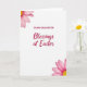 This card features a tall, white background that leaves plenty of open space for a gentle, affectionate message. Near the top, the words “DEAR DAUGHTER” sit in all caps in a classic serif style, printed in deep crimson. Centered beneath it, “Blessings at Easter” appears in flowing cursive lettering in the same deep crimson, with smooth loops that feel tender and close. Soft pink flowers peek in from the top-left and bottom-right corners, like a quiet embrace around the words 🌷. Each bloom has many pale pink petals that fan outward, and the warm yellow-orange centers add a sunny touch. The even, soft lighting keeps the white background bright while letting the petals show faint shading and gentle gradients. In the corners, the cropped blossoms angle inward toward the centered text, with the top-left flower reaching diagonally down and the bottom-right flower reaching diagonally up 🐇.