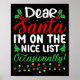 Dear Santa I'm On Nice List Occasionally! Funny Xm Poster