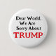 Dear World, we are sorry about TRUMP. Black and red text on a white background.