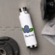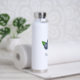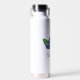 Une Bouteille isotherme avec un dessin de brimbelles ou myrtilles et ses feuilles vertes : une bonne idée pour prendre une boisson chaude ou froide au travail ou en randonnée. Le texte est personnalisable !