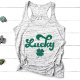 Partagez la chance de l'Irlandais avec notre super mignon vintage inspiré St Patrick's Day débardeur. Le design est "chanceux" dans la typographie de script de bulle rétro vert émeraude et une illustration de trèfle à quatre feuilles avec un effet vintage en détresse.