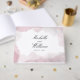Ein elegantes Hochzeitsdesign mit einem hellrosa Aquarellrahmen auf weißem Hintergrund, entworfen von Shelby Allison.