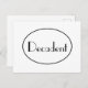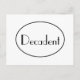 Typografie-Design, das in einer Art Deko Stil Schrift "Dekadent" ausdrückt. Die Schrift ist schwarz auf einem dunkelweißen Hintergrund und ist von einem ovalen schwarzen Rand umgeben. Personalisieren Sie diese Karte einfach, indem Sie den Vorlagentext bearbeiten. Karo aus meinen anderen Art Deco Designs. Danke, dass du mir meine Designs angesehen hast!