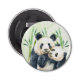 Ouverture de bouteille avec une jolie illustration aquarelle représentant une mère noire et blanche et un bébé panda ourson ensemble. Maman tient son petit au milieu de tiges de bambou vertes.