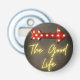 Design amusant avec une sensation vintage - comprend le texte jaune néon "The Good Life" et une flèche rouge style ampoule marquee sur arrière - plan en détresse.