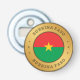 Le drapeau burkinabé est encastré dans un faux anneau d'or arrondi. Les mots "Burkina Faso" se trouvent en haut et en bas de la conception et ont un effet pressé. La paire de trois étoiles décoratives les unes en face des autres, est également conçue avec un effet pressé.
