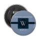 Customisez / Personnalisez avec votre monogramme mariage initial sur un carré bleu avec un design art déco sophistiqué. Personnalisez également les prénoms des couples et la date du mariage. Une élégante bannière bleu foncé derrière. Placez-vous sur un simple arrière - plan gris bleu. Soirée de mariage classique et élégante / garde-robe.