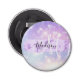 Un ouvre-bouteille jeune et mignon avec un arrière - plan éclatant rose, violet, lilas et bleu unicorne arc-en-ciel. Votre nom personnalisé et votre monogramme sont écrits dans un élégant script écrit à la main avec un arrière - plan de rayures de pinceau violet lilas unicorn pinceau. Un cadeau d'anniversaire ou de Noël parfait !