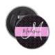 Glam et girly noir et rose nid d'abeille métallique motif nom monogramme et ouverture initiale bouteille. Votre nom personnalisé et votre monogramme sont écrits dans un élégant script en lettres blanches et noires avec un arrière - plan rose. Vous pouvez modifier la couleur du texte, le style et la taille de police à l'aide de l'option personnaliser.