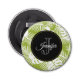 Ouverture de bouteille personnalisée avec un motif extensible de grands feuilles de palme sur un arrière - plan vert olive. Moderne tendance et tropical. Un cercle noir avec une bordure intérieure dorée superposée avec votre nom personnalisé et votre monogramme à l'intérieur.