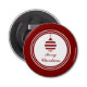Ouverture de bouteille ronde avec un imprimé de Noël rouge et blanc Joyeux Noël et une baule de Noël rayée.