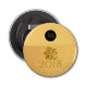 Belle découpe en papier doré d'un chien (à la chinoise) pour le Nouvel An Chinois du Chien ou Anniversaire (pour les personnes nées dans l'Année du Chien) avec monogramme sur ouvre-bouteille ronde personnalisable. Plaque de papier, serviette en papier, invitation, autocollants, aimant, ornement, produits électroniques et plus encore...