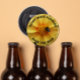 Soutenir la plantation de plus de fleurs sauvages pour aider à sauver les abeilles. Un ouvre-bouteille de style rond présente l'image d'un bourdon sur une fleur de Dahlia jaune. L'ouvre-bouteille est également magnétique. Idéal pour les Jours des terres !