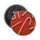 Sucre de canne rouge et blanc bandes minty sur un arrière - plan rouge. Ces bonbons de Noël raviront et vous rappelleront les fêtes du passé, du présent et du futur. Vous les avez peut-être accrochés à l'arbre de Noël ou simplement les avez dégustés en gâteau doux comme un enfant. Amusant et festif !