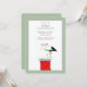 Des invitations créatifs de baby shower de Noël mettant en vedette la cigogne mignonne dans un chapeau de Père Noël, livrant un nouveau-né.
