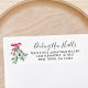 Dieses festliche Adressetikett ist mit Aquarellmalmücken, Beeren, Band dekoriert und sagt "Decking New Halls" in stilvoller Schrift-Typografie. Einfach anpassbar. Ändern Sie mithilfe des Entwurfstools die Textgröße, den Stil oder die Farbe. Original Wasserfarbe © Michele Davies.