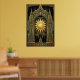 Enter a realm of solar majesty with the "Aura Celestial" Sun Portal poster. This breathtaking design centers a radiant golden sunburst within a towering, symmetrical cathedral arch. Detailed with tiered spires, fluted columns, and intricate Art Deco patterns, the composition is presented in a luxurious teal and metallic gold palette against a deep obsidian sky. Perfect for a grand entryway, a sophisticated office, or as a focal point in a Dark Academia gallery wall, this print captures the high-luxury ambition of the Gatsby era.