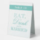 Décor de table mariage exquis Plaques de numérotation personnalisées avec typographie élégante. Signes personnalisés. Belle décoration de table pour une réception de mariage classe. Aidez à trouver rapidement leur table et leurs sièges. Design de texte turquoise bleu et blanc. Décor tendance pour les lieux extraordinaires. Petite et grande taille.