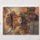 L'image présente une vache Highland avec un long manteau shaggy distinctif et des cornes proéminentes. La vache est ornée d'accessoires de style steampunk, dont des engrenages, des roupies et un casquette avec lunettes. Autour de la vache sont des éléments automnaux comme les feuilles déchus, les citrouilles, et ce qui semble être un tonneau en bois sur le côté gauche. La combinaison des ornements rustiques animaux et mécaniques crée une juxtaposition intrigante qui mêle thèmes naturels et industriels. "Steampunk Highland Cow - Une représentation artistique d'une vache shaggy Highland embelli d'accessoires steampunk dans un décor d'automne. Parfait pour ceux qui apprécient l'art unique mélangeant des éléments organiques et mécaniques." art industriel rustique highland, vache montagneuse avec des engrenages, des idées de déco steampunk, vache à vapeur highland, halloween highland steampunk, rhdesigns papier de tissu decoupage, vache à vapeur halloween vintage, design steampunk capricieux,