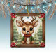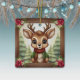 Décoration de Noël fantaisiste de renne, ornement en céramique carrée rustique avec un cadre en bois brun, avec des fleurs de poinsettia de Noël et un mignon bébé animal de la forêt, cerf unique avec des bois dans un style d'art graphique de dessin animé portant une veste et une écharpe, debout au premier plan. Des arbres hivernaux complètent le charme de la saison hivernale de cette illustration de personnage de biche de la faune forestière, ce qui en fait un excellent cadeau. Le design de faon est sur l'avant et l'arrière. Ainsi, quelle que soit la façon dont la décoration suspendue tourne, elle a toujours l'air festive et complète. Procurez-vous le vôtre aujourd'hui !