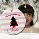Changez vos souhaits de Noël avec ce design moderne de Noël. Toujours en utilisant les couleurs saisonnières traditionnelles, ce design utilise le rose et le noir. L'arbre noir a des décorations rouges. Modifiez l'image pour votre propre photo. Salutation de Noël moderne et simple.