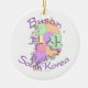 Ornement coloré personnalisable de carte de la Corée du Sud avec l'emplacement de ville de Busan identifié par un drapeau. Nom de ville également dans le Hangeul. Famille sud-coréenne unique ou adoption ou cadeau de Noël pour des familles avec des enfants de Busan. Conçu par Hendrika de www.RedThreadMaps.com