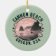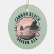 L'élégant ornement de keepsaké offre une vue rétro sur la plage de Cannon, OU sur l'arrière - plan vert pastel.