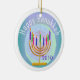 Beau ornement Hanoukka avec neuf menorah bougie dit "Heureux Hanoukka" ! Vous pouvez facilement ajouter l'année en cours à ce keepsaké Happy Hanoukka keepsaké!
