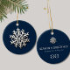 Élevez votre esprit de vacances d'entreprise avec notre logo personnalisé de vacances de Noël Joy Snowflake Ornament. Cet ornement exquis présente un design élégant de flocon de neige, avec un flocon métallique argent brossé orné d'un riche arrière - plan bleu marine. L’avant offre une touche sophistiquée, tandis que l’arrière comporte un flocon de neige à côté des messages sincères "Salutations de saison" et "Souhaiter la joie de vos vacances". Parfait pour les entreprises et les entreprises, cet ornement saisit l'essence de la saison tout en mettant en valeur votre marque. Accrochez-le fièrement comme un ornement d'arbre ou décorez votre espace de bureau avec son élégance raffinée. Faites de vos fêtes un moment inoubliable grâce à cette décoration personnalisée et originale.