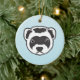 Un visage furet en noir et blanc contre un arrière - plan bleu clair.