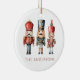 Ornement traditionnel de Noël. Design dispose d'une aquarelle Nutcrackers et d'un modèle personnalisable facile pour vous d'ajouter vos détails personnels.Si vous avez besoin d'aide avec ce design, s'il vous plaît contactez-moi via mon messager zazzle store et sera heureux de vous aider. janine at willow spring studio