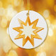 Paix. Cet élégant ornement présente l'étoile à neuf branches, symbole révéré de la foi bahá'íe, conçue dans une couleur or frappante (attention : la couleur or n'est pas métallique). Les neuf points représentent l'unité, l'exhaustivité et la croyance bahá'íe en l'harmonie de l'humanité. Avec sa symétrie gracieuse et sa signification spirituelle, cet ornement est parfait pour célébrer les fêtes bahá'íes ou comme un cadeau réfléchi pour un être cher. Son design éclatant ajoute un sentiment de paix et de réflexion à tout espace. Une belle façon d'honorer votre foi et votre dévotion express, cet ornement est à la fois intemporel et significatif.