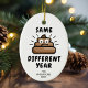 Amusement personnalisé 2021 pandémie ornement de noël avec un arrière - plan blanc simple qui peut être changé à n'importe quelle couleur, un graphique vectoriel de poo, les mots "même merde année différente", votre nom de famille, et l'année.
