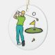 Le parcours de golf montre un golfeur qui s'éloigne et conduit la balle à des centaines de mètres vers le vert lointain. L'image montre un golfeur à la fin du tir avec un club haut derrière lui, tenu avec les mains et le corps en position finale de conduite. La balle a quitté le tee et est en route vers un trou en un ! Pour les amateurs et les joueurs de golf.