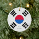 Montrez votre amour pour la Corée du Sud avec un message personnalisé Corée du Sud Drapeau ornement céramique. Cet élégant ornement en céramique de haute qualité présente l'emblématique Taeguk bleu et rouge (Yin-Yang) au centre du drapeau sud-coréen, entouré de trigrammes noirs distinctifs. Que vous fêtiez une occasion spéciale, que vous fassiez la commémoration du patrimoine coréen ou que vous cherchiez un cadeau unique, cet ornement peut être personnalisé avec un message personnalisé pour le rendre encore plus spécial. C'est un complément parfait à votre décor de vacances ou un cadeau mémorable pour quiconque tient la Corée du Sud à proximité de son coeur.