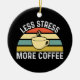 Toute personne qui aime le café et connaît l'effet qu'il a sur son niveau de stress va adorer ce design de café de style rétro sur des sacs, des tasses, des autocollants, des T-shirts, des coussins, et plus avec une tasse de café vapeur design avec le texte Moins de stress Plus de café!