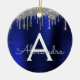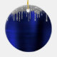 Argent et Marine Blue Faux Parties scintillant à étincelles métalliques brossé Monogramme en métal Nom et ornement de Noël initial. Cela rend le cadeau parfait pour 16 ans, mariage, douche nuptiale, anniversaire, baby shower ou bachelorette pour quelqu'un qui aime le luxe glam et les styles chic.