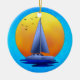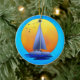 Voilier de catamaran avec un coucher du soleil d'océan et mouettes et un arrière - plan de bleu d'océan.