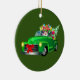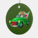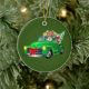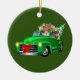 Père Noël dans Green Pickup Truck Ornement en céramique