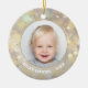 Votre photo préférée est présentée à l'avant et à l'arrière de cet ornement en céramique ronde avec des flocons d'or sur un arrière - plan de Noël de lumières de bokeh, étoiles et points. Téléchargez votre propre image pour créer des ornements d'arbres de Noël pour vous-même ou offrez-en un cadeau à votre famille, vos amis, vos parents et vos grands-parents ! PLUS de matériaux, de formes et de DESIGNS dans notre magasin.
