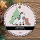 Adorable bébé zèbre avec rayé rouge/vert, stockage de Noël et arbre vert en arrière - plan. Arrière - plan rose pâle pour une petite fille. Bannière noire et bordure rayée autour de l'ornement. Modèle créé pour vous. Parfait pour les nouveaux parents qui fêtent leur premier enfant à Noël!