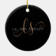 Ornement en céramique monogramme moderne Black Gold Feminine Script. Personnalisez facilement cet ornement moderne et élégant en céramique avec votre monogramme et votre nom personnalisés.